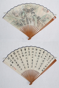 编号:9802 作者:启功 名称:山水、书法成扇 规格:18.5*46cm 形式:纸本竹骨 售价:¥120000 备注: