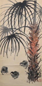 编号:10508 作者:齐白石 名称:棕榈小鸡 规格:41*84cm 形式:纸本立轴 售价:¥180000 备注: