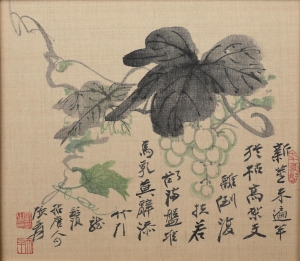 编号:10523 作者:张大千 名称:葡萄 规格:27*24cm 形式:绢本卡板 售价:¥28000 备注: