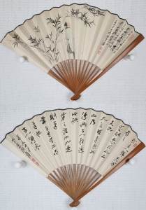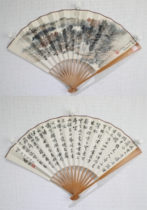 编号:10789 作者:张大千 名称:双面成扇 规格:18*49cm 形式:纸本竹骨成扇 售价:¥80000 备注: