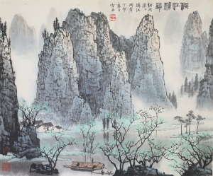 编号:10870 作者:何海霞 名称:青绿山水 规格:18*26cm 形式:纸本镜心 售价:¥38000 备注: