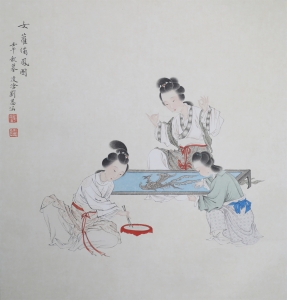 编号:1594 作者:许莹 名称:穿针引线 规格:69×69cm 售价:¥28000 备注:出版于《彩墨世界许莹国画人物作品精选》天津杨...