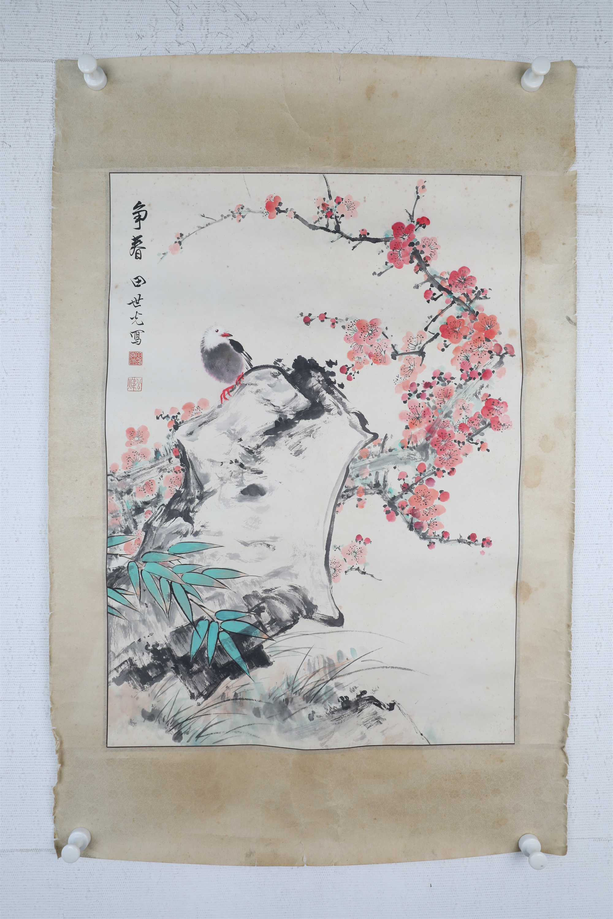 田世光(1916年10月—1999年7月)号公炜,祖籍山东乐陵,世居北京西海淀六郎庄。师承张大千、赵梦朱、吴镜汀、于非闇、齐白石诸先生。早年拜张大千门下,为大风堂弟子之一 。早年求学于京华美术学院,专攻国画花鸟,解放前在北平国立艺专任教,曾任中央美院教授。他长期从事花鸟、山水画创作,继承了宋元派双勾重彩工笔花鸟画的优良传统技法,并赋之予新的时代精神,为我国现代工笔花鸟画名家。田世光先生是中国美术家协会会员,北京工笔重彩画副会长,中国画研究院第一届院务委员。