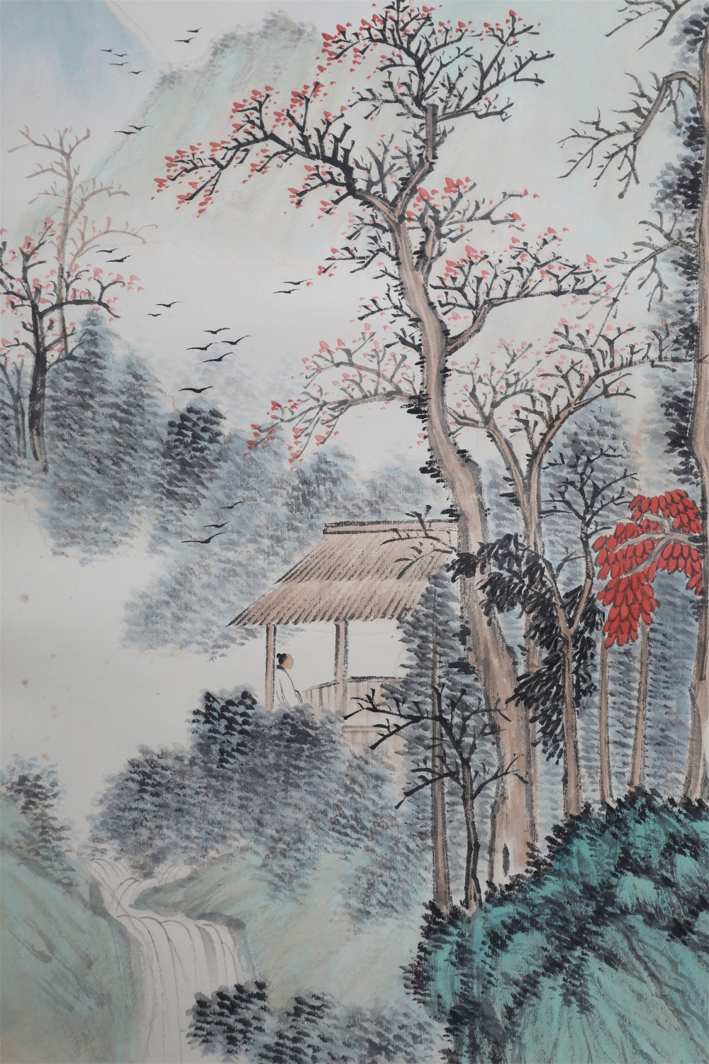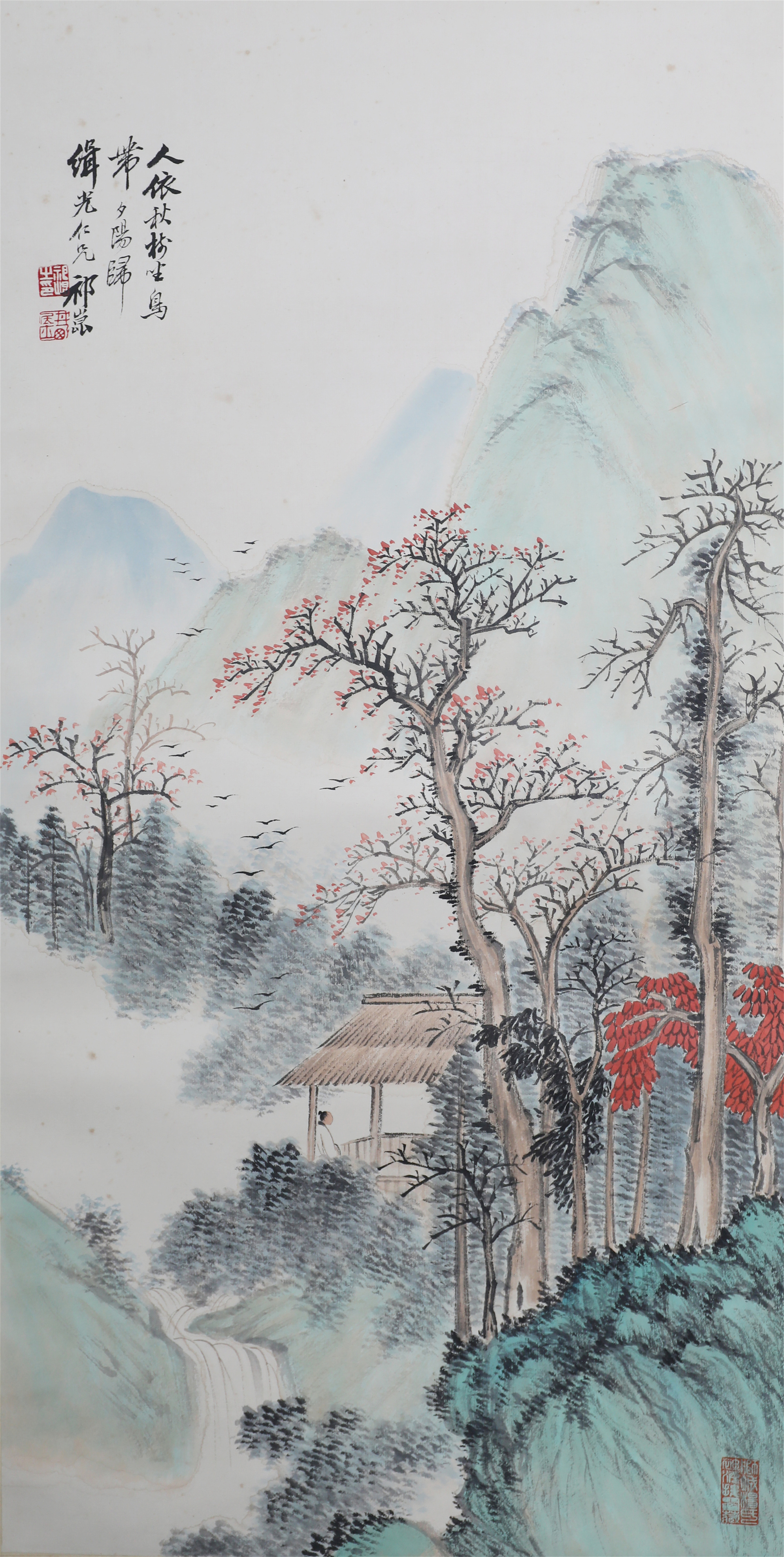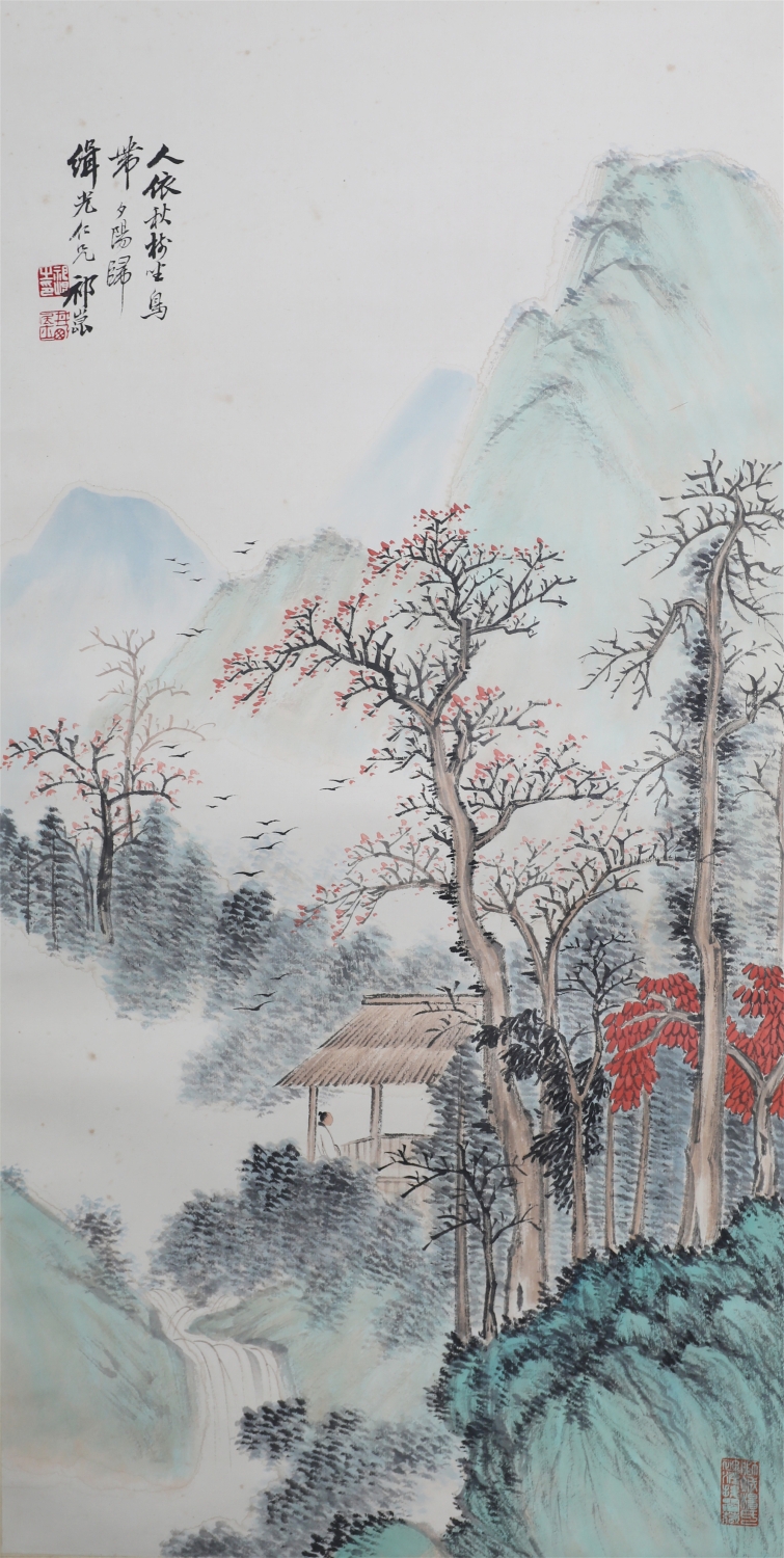 祁井西(又名祁昆1901—1944)字景西,号井西居士,斋号曰松崖精舍。北京人。初以籹卖颜色得识京城名家,刻励自学。因受民初追踪宋元之风的影响,专意摹古临古,尚北宗山水,所画理法精严,笔墨精致,枯润合度。在20-40年代的北京有一定影响。工细山水得明人遗意,又精篆刻。性喜犬,室内床上下所蓄犬无思十余头,可谓奇癖,所作山水,规模明人,而近于王翚。作风精细清润,构图全出之正统派民国初年北京画坛以王翚为“神圣不可侵犯”,祁氏亦受影响,在学王诸诸家中堪称翘楚。但用笔略嫌拘谨板实,工稳有余,创意不足。弟子有郭传璋、徐鼎正、梁树年等。