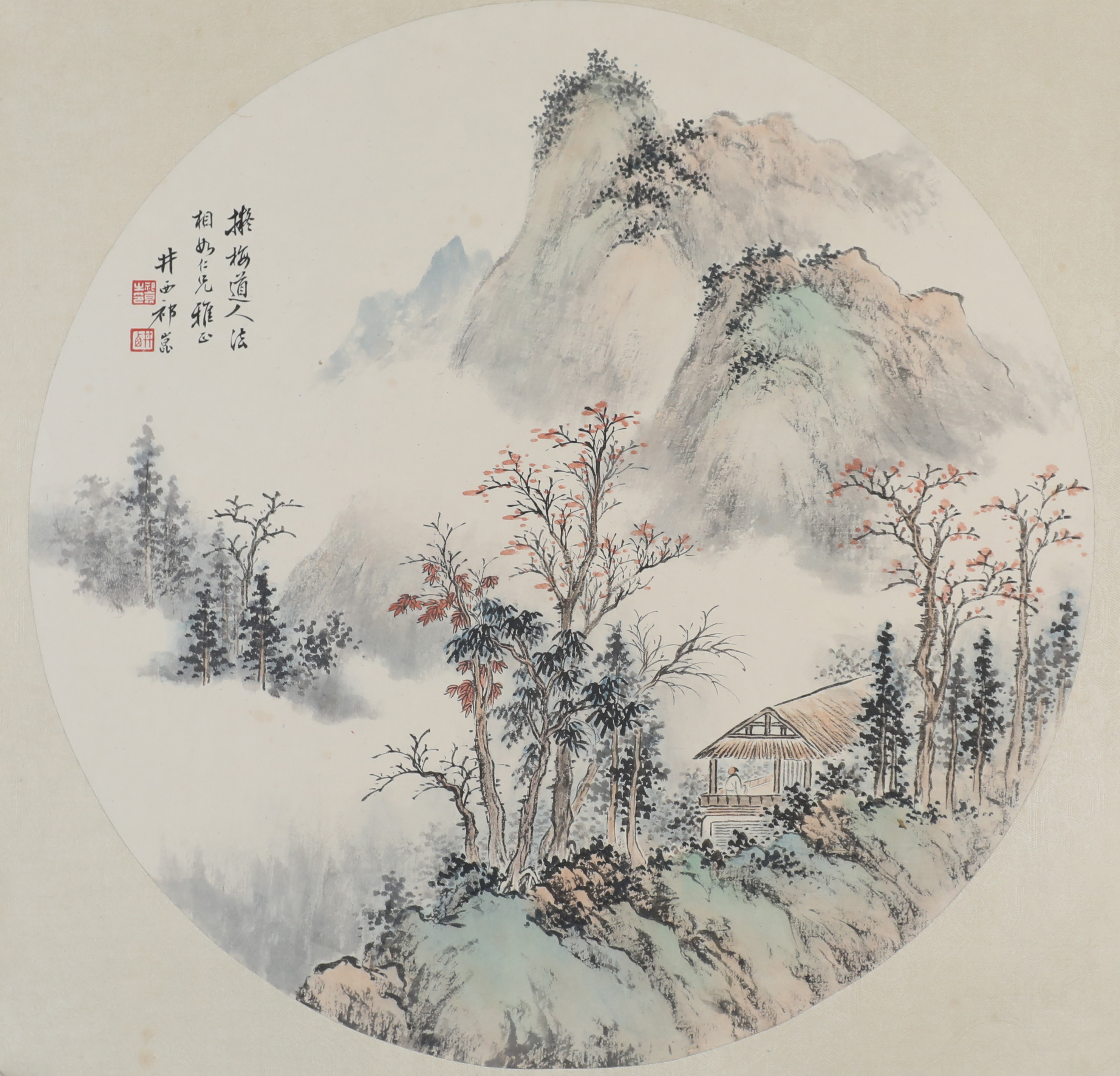 祁井西(又名祁昆1901—1944)字景西,号井西居士,斋号曰松崖精舍。北京人。初以籹卖颜色得识京城名家,刻励自学。因受民初追踪宋元之风的影响,专意摹古临古,尚北宗山水,所画理法精严,笔墨精致,枯润合度。在20-40年代的北京有一定影响。工细山水得明人遗意,又精篆刻。性喜犬,室内床上下所蓄犬无思十余头,可谓奇癖,所作山水,规模明人,而近于王翚。作风精细清润,构图全出之正统派民国初年北京画坛以王翚为“神圣不可侵犯”,祁氏亦受影响,在学王诸诸家中堪称翘楚。但用笔略嫌拘谨板实,工稳有余,创意不足。弟子有郭传璋、徐鼎正、梁树年等。