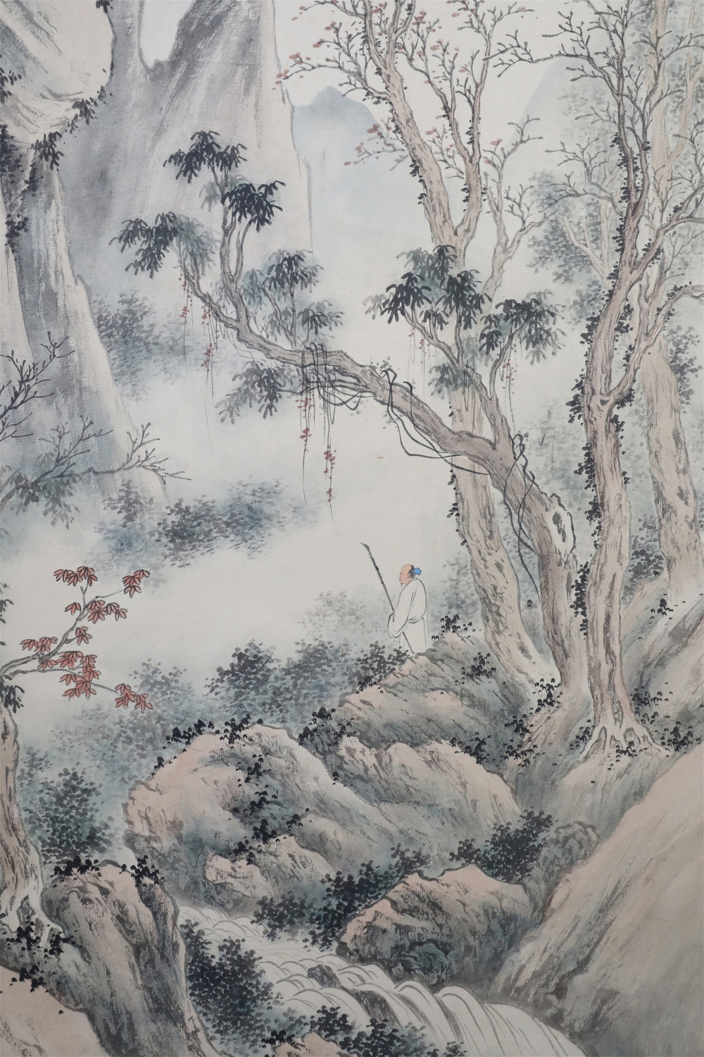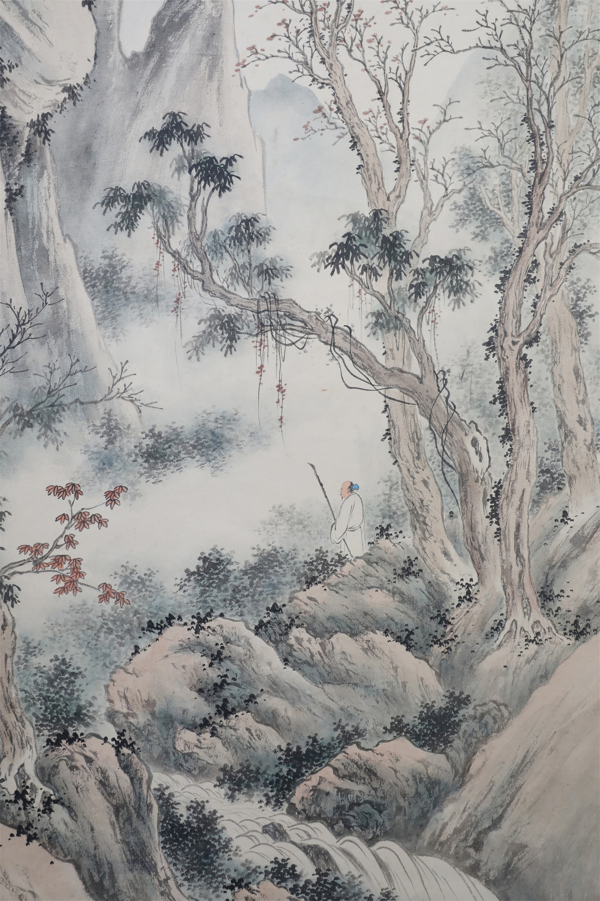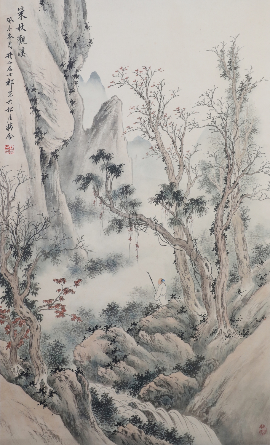 祁井西(又名祁昆1901—1944)字景西,号井西居士,斋号曰松崖精舍。北京人。初以籹卖颜色得识京城名家,刻励自学。因受民初追踪宋元之风的影响,专意摹古临古,尚北宗山水,所画理法精严,笔墨精致,枯润合度。在20-40年代的北京有一定影响。工细山水得明人遗意,又精篆刻。性喜犬,室内床上下所蓄犬无思十余头,可谓奇癖,所作山水,规模明人,而近于王翚。作风精细清润,构图全出之正统派民国初年北京画坛以王翚为“神圣不可侵犯”,祁氏亦受影响,在学王诸诸家中堪称翘楚。但用笔略嫌拘谨板实,工稳有余,创意不足。弟子有郭传璋、徐鼎正、梁树年等。