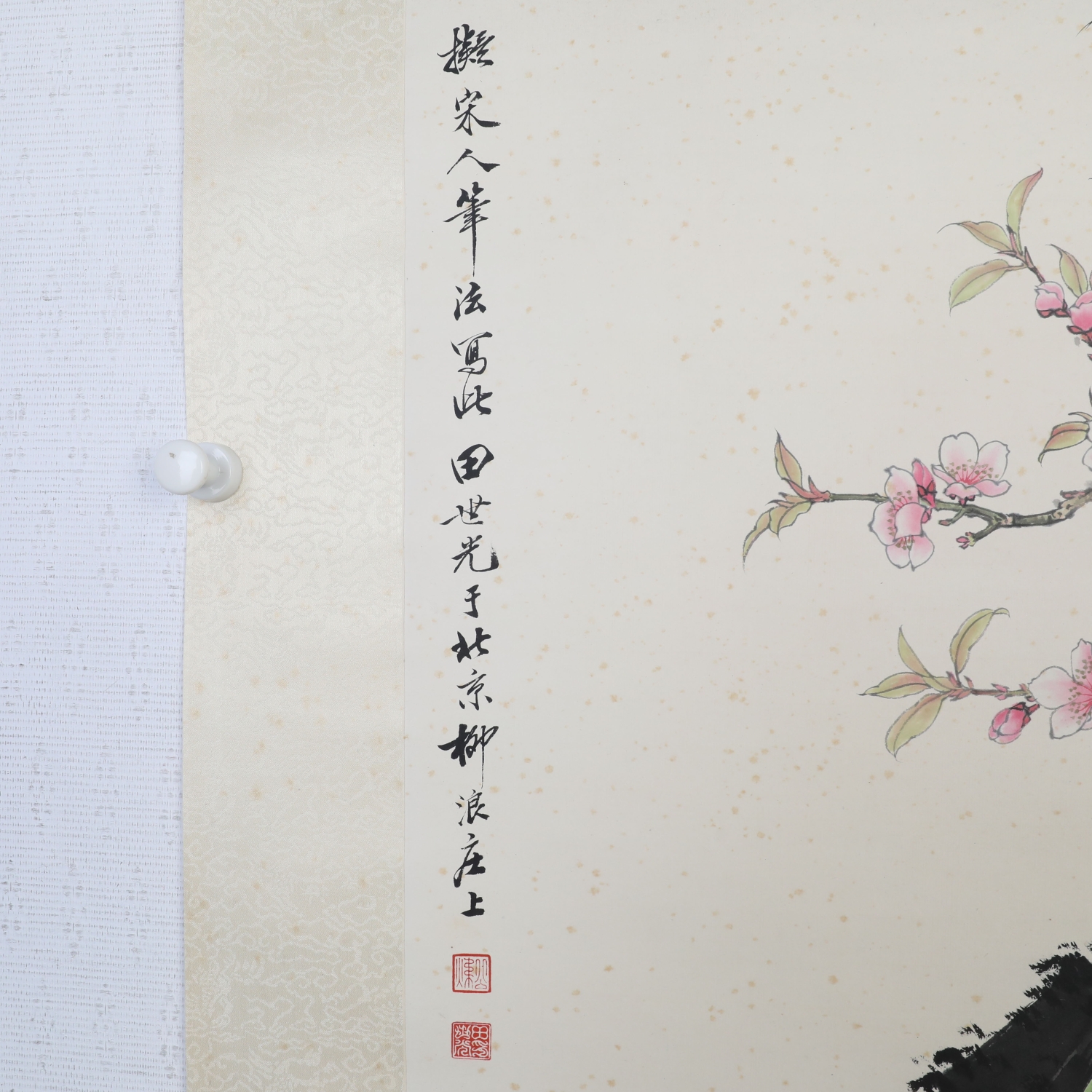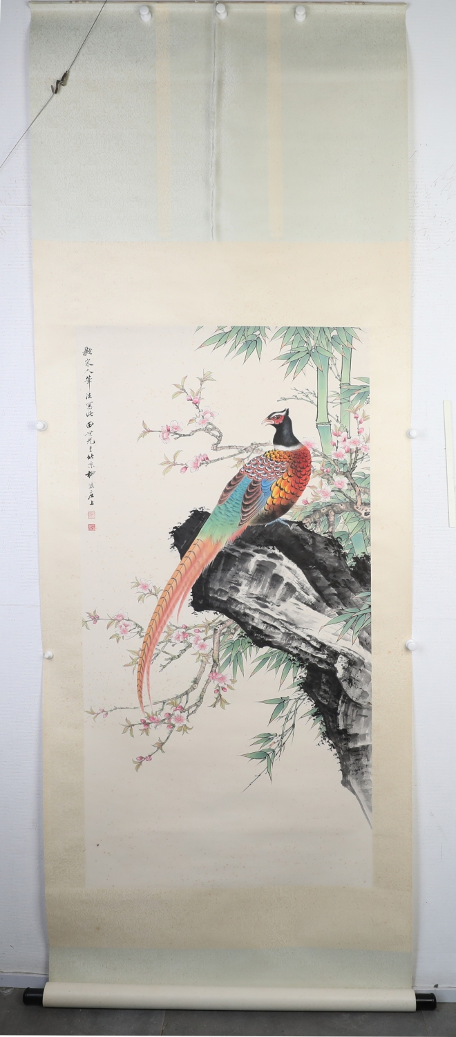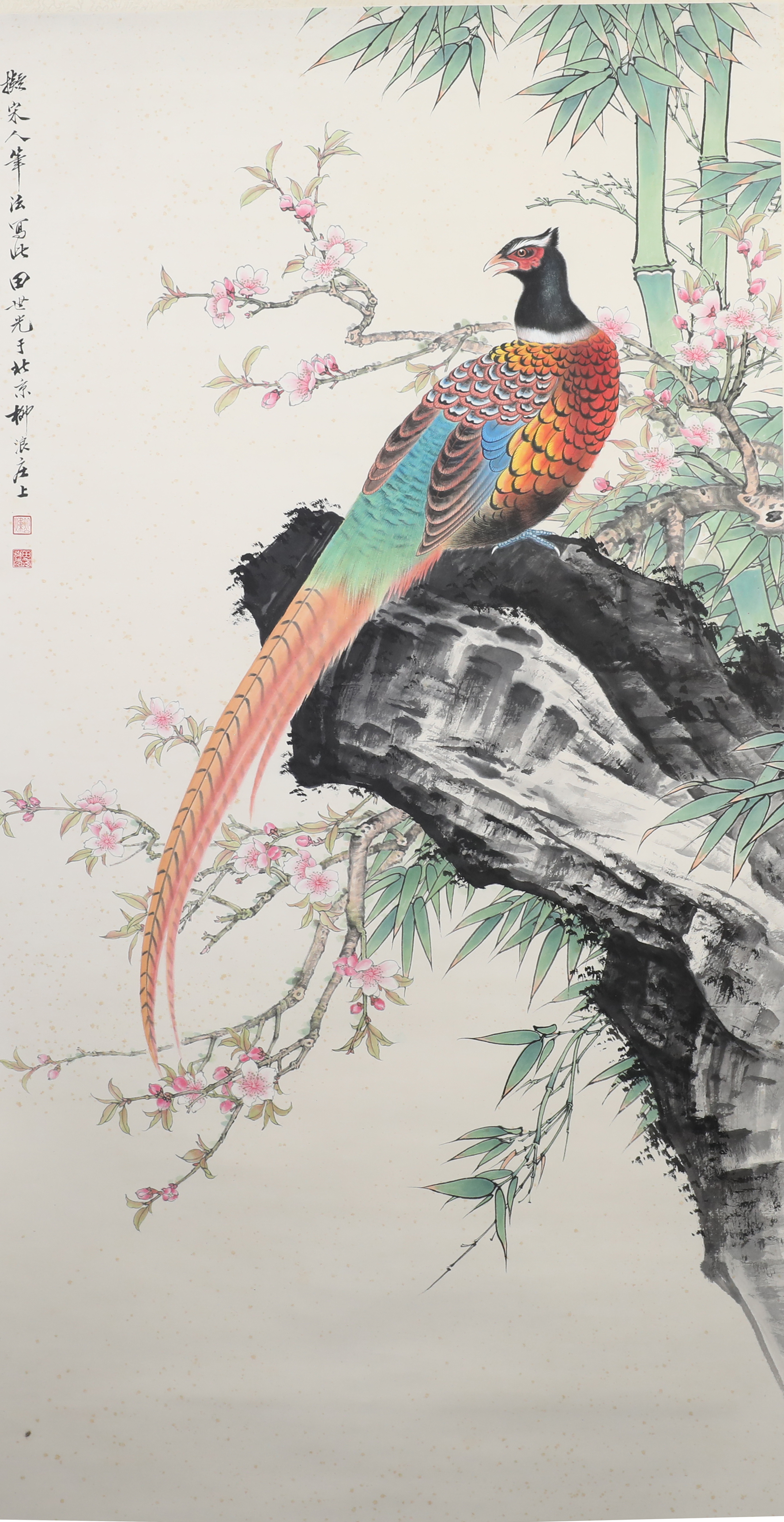 田世光(1916年10月—1999年7月)号公炜,祖籍山东乐陵,世居北京西海淀六郎庄。师承张大千、赵梦朱、吴镜汀、于非闇、齐白石诸先生。早年拜张大千门下,为大风堂弟子之一 。早年求学于京华美术学院,专攻国画花鸟,解放前在北平国立艺专任教,曾任中央美院教授。他长期从事花鸟、山水画创作,继承了宋元派双勾重彩工笔花鸟画的优良传统技法,并赋之予新的时代精神,为我国现代工笔花鸟画名家。田世光先生是中国美术家协会会员,北京工笔重彩画副会长,中国画研究院第一届院务委员。