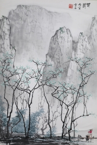 白雪石(1915.6.12-2011.4.22),男,斋号何须斋,北京市人,自幼习画,早年师从赵梦朱,后拜梁树年为师,1937-1948年期间曾多次举办个人画展,同时参加湖社画会和中国画研究会;后执教于北京师范学院、北京艺术学院,后在中央工艺美院任教,还兼北京山水画研究会会长;多次为中南海、人民大会堂等绘制巨幅国画;多次出国举办画展;他的山水画师宗北派,旁及南派,广采博取,兼收各类画种之精华,具有宋画之严谨,元画之轻快,水彩画之秀润,版画之纯净而具装饰美;其中尤以桂林为题材创作的青绿山水画最能体现和代表白雪石的绘画风格。