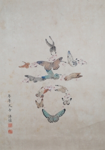 编号:10494 作者:P溥儒 名称:蝴蝶大吉图 规格:71*62cm 形式:纸本立轴 备注: