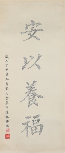 编号:c10969 作者:P溥儒 名称:斋号 规格:38*88cm 形式:纸本镜心 备注: