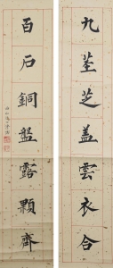 编号:10227 作者:P溥儒 名称:楷书七言联 规格:21*93cm*2 形式:纸本镜心 备注: