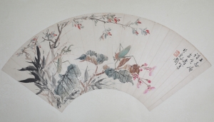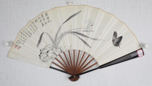 编号:11210 作者:于非厂 名称:兰蝶图 规格:60*20cm 形式:纸本竹骨成扇 售价:¥45000 备注: