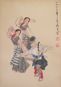 编号:1594 作者:许莹 名称:穿针引线 规格:69×69cm 售价:¥28000 备注:出版于《彩墨世界许莹国画人物作品精选》天津杨...