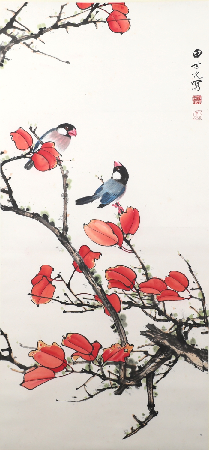 10450 田世光 《红叶双雀》