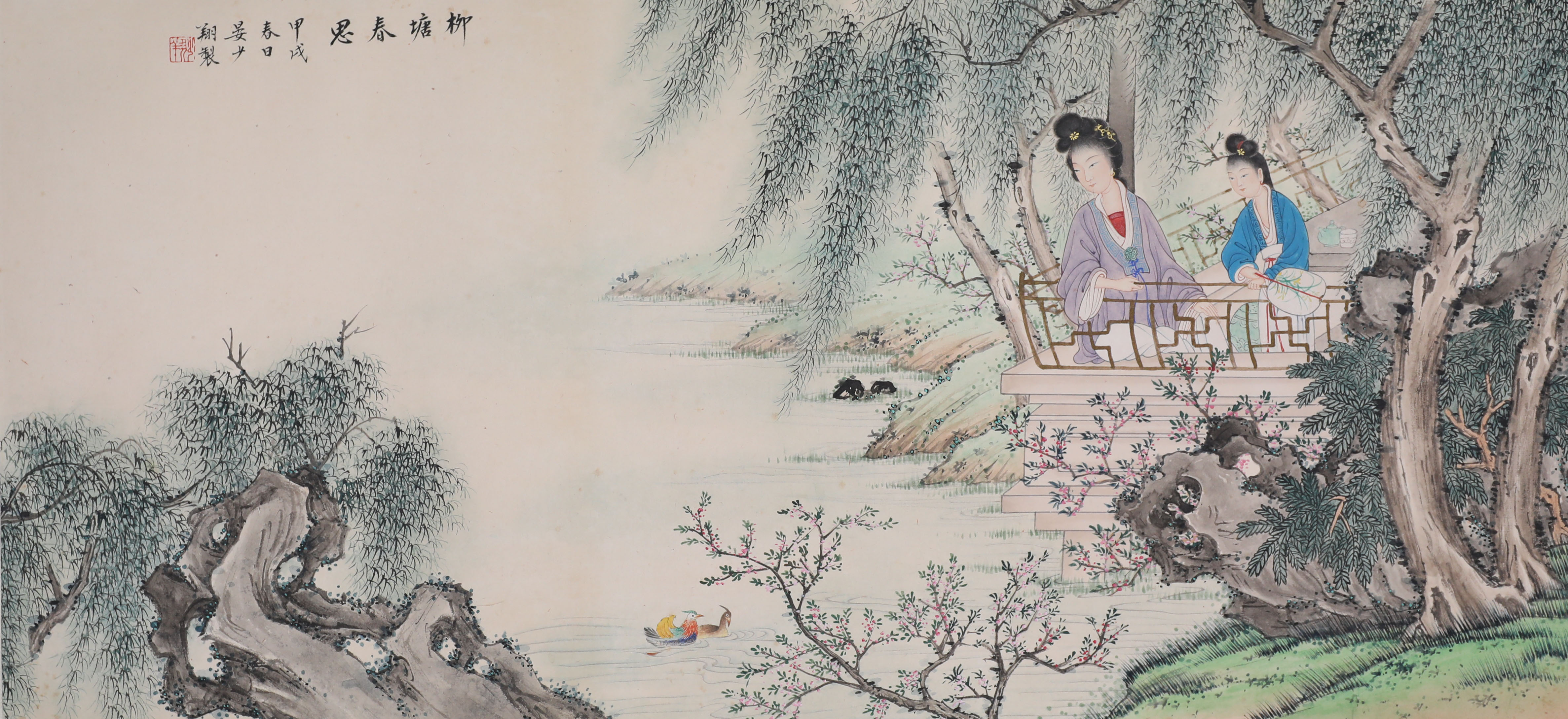 柳塘春思图