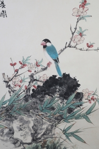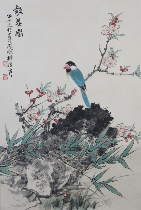 田世光(1916年10月—1999年7月)号公炜,祖籍山东乐陵,世居北京西海淀六郎庄。师承张大千、赵梦朱、吴镜汀、于非闇、齐白石诸先生。早年拜张大千门下,为大风堂弟子之一 。早年求学于京华美术学院,专攻国画花鸟,解放前在北平国立艺专任教,曾任中央美院教授。他长期从事花鸟、山水画创作,继承了宋元派双勾重彩工笔花鸟画的优良传统技法,并赋之予新的时代精神,为我国现代工笔花鸟画名家。田世光先生是中国美术家协会会员,北京工笔重彩画副会长,中国画研究院第一届院务委员。